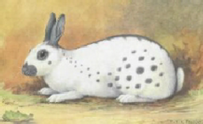 If you are breeding English rabbits for showing, the spots have to match the picture shown below as closely as possible, making it very difficult - the perfect English rabbit has yet to be born!